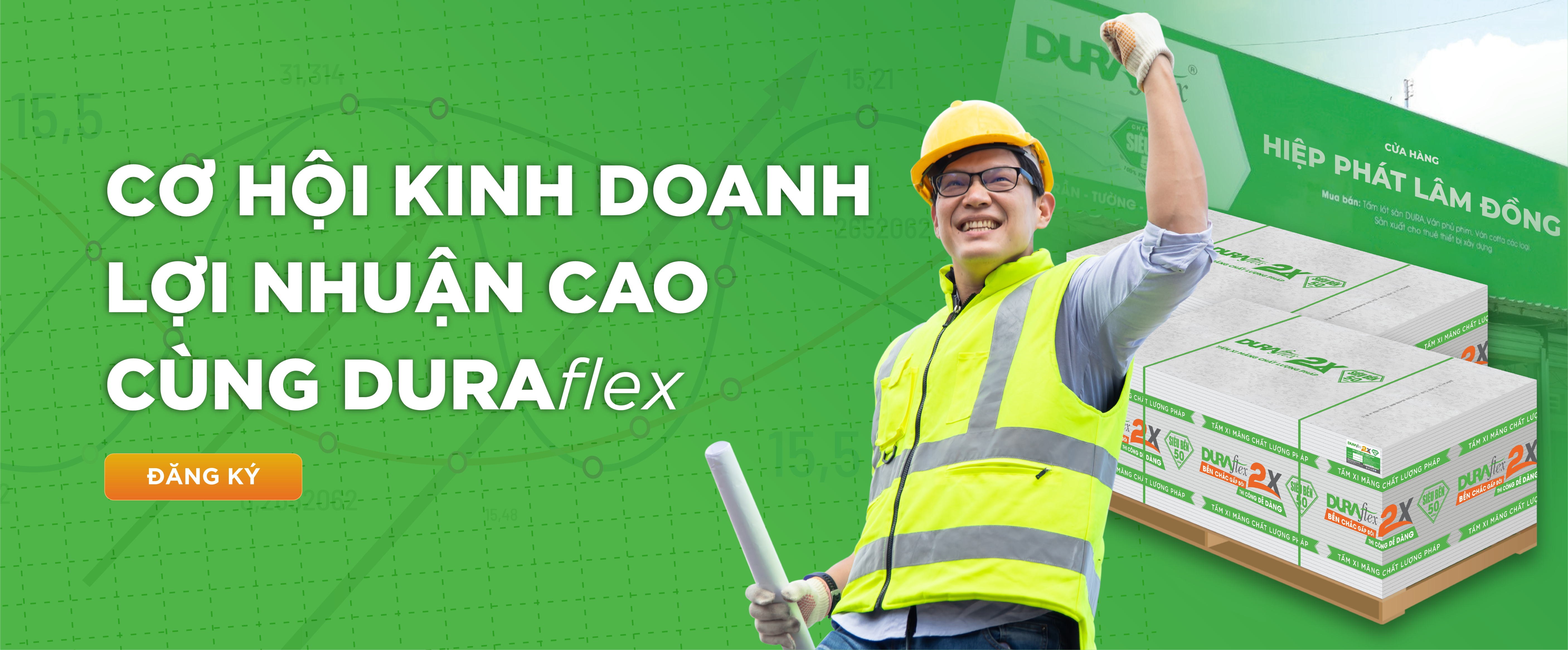 Với phương châm mang sản phẩm chất lượng đến khắp các công trình xây dựng, DURAflex mở ra cơ hội kinh doanh lợi nhuận cao dành cho các cửa hàng bán vật liệu xây dựng đăng ký kinh doanh sản phẩm tấm xi măng sợi DURAflex 2X.